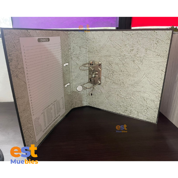 Estos archivadores de palanca tipo ampo no solo son funcionales, sino también increíblemente prácticos. Su diseño permite un montaje sencillo y un etiquetado claro en el lomo, facilitando la rápida localización de cualquier archivo. Son la herramienta perfecta para mantener un control estricto y accesible de toda su papelería.