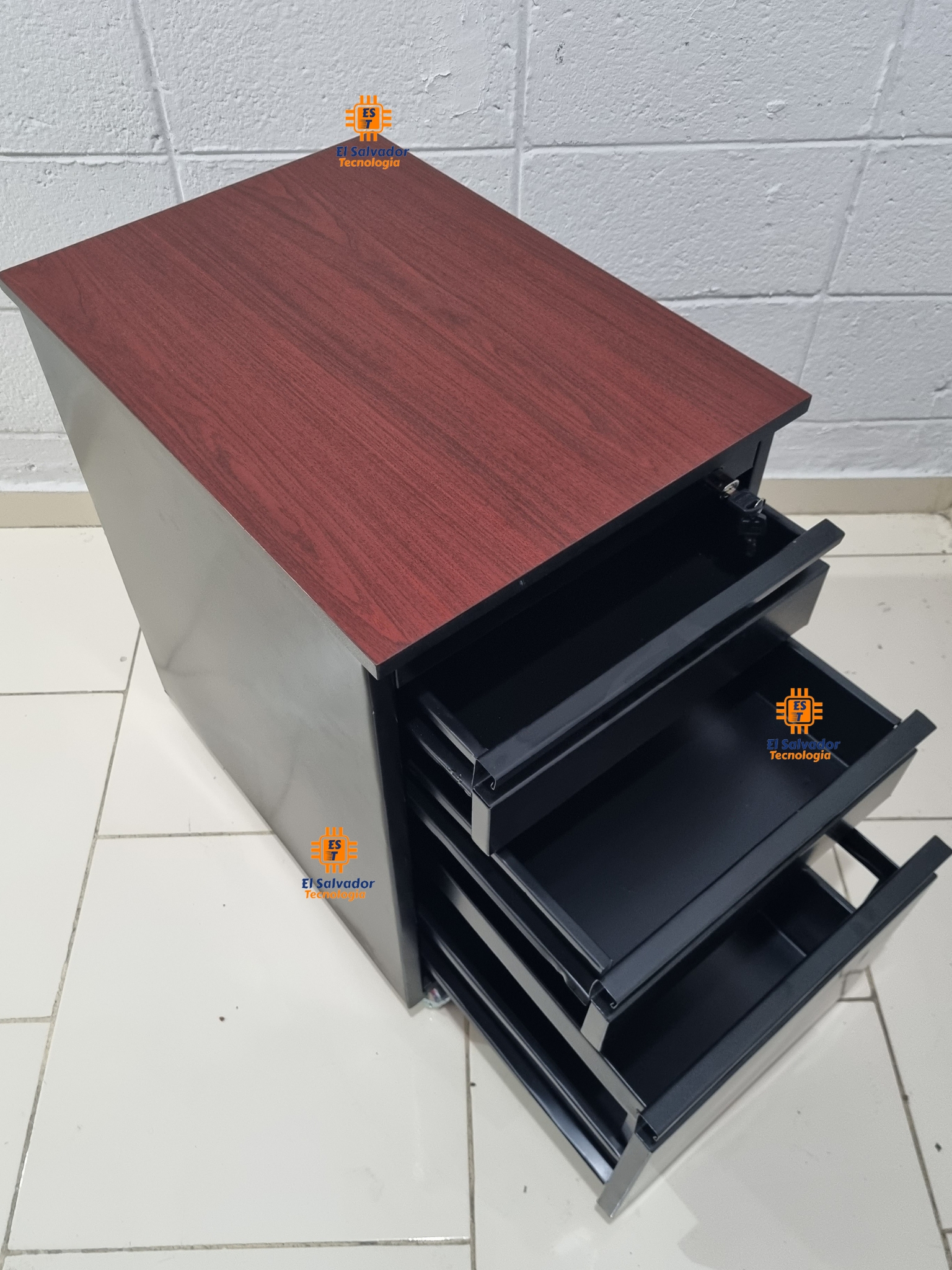 1 valoración en Archivo Robot 3 Gavetas – CUBIERTA de MELAMINA – Color ZAPELLY – Titan- Estructura Metálica Negra – 0.67 Alto x 0.40 Ancho x 0.56 Profundidad