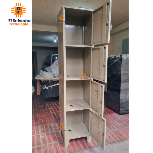 Locker de 4 Puertas con Llave y Patas paso del Agua- Amplio para Meter Cascos Beige – 1.80 Alto x 0.40 Frente x 0.40 Fondo