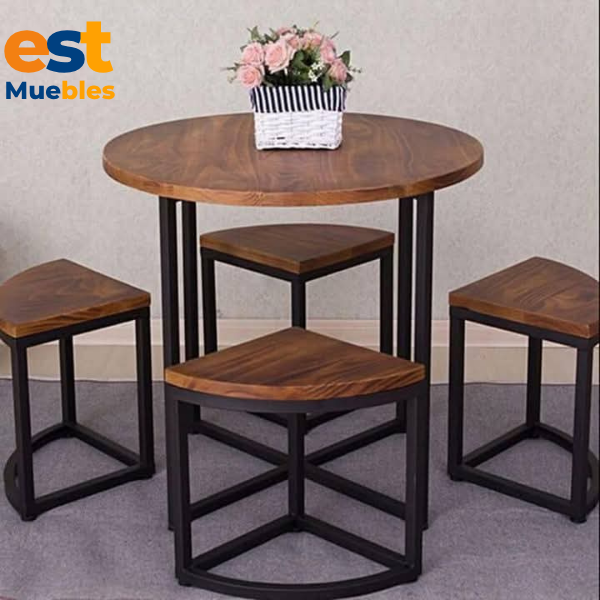 Conjunto de mesa con 4 bancos de estructura metalica-TLS-4051