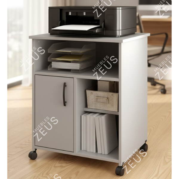 Mueble para Impresora ZEUS-MPI0018 | Melamina Gris y Puerta Lateral