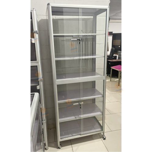 Vitrina Exhibidora Vertical CON RODOS Y CHAPAS– 0.70 m ancho x 0.40 m fondo x 1.80 m alto MAX-46